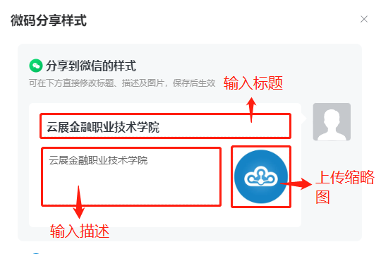 如何以標題、描述、縮略圖的形式把微碼分享到微信上?