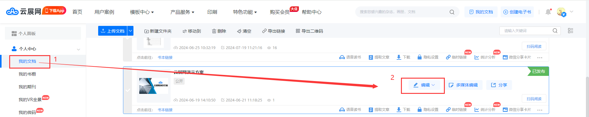 在【我的文檔】頁面,找到需要編輯的電子書,點(diǎn)擊【編輯】進(jìn)入