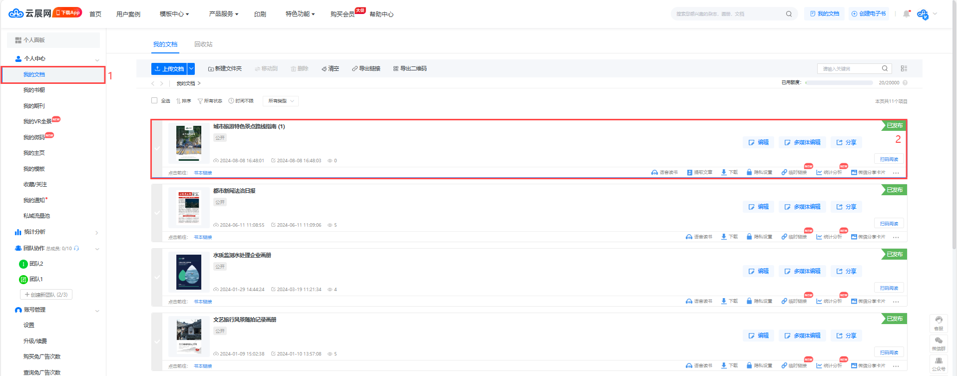 制作完成后的電子書(shū)將保存在【我的文檔】里,后續(xù)如果想重新編輯、管理的時(shí)候,可在【我的文檔】頁(yè)面對(duì)電子書(shū)進(jìn)行編輯、復(fù)制、刪除、設(shè)置等操作。