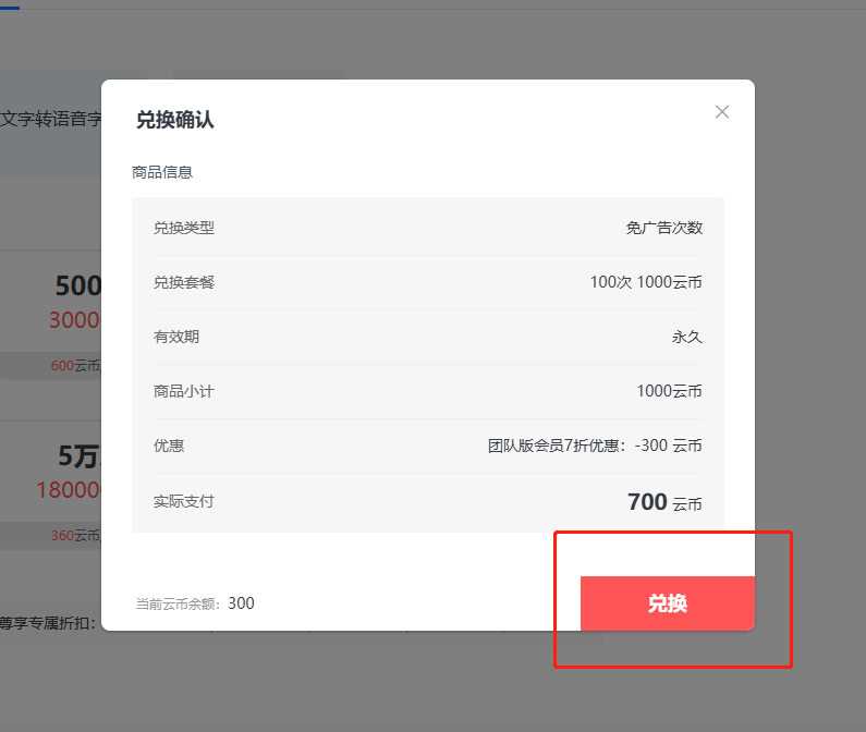 點(diǎn)擊【云幣兌換服務(wù)】,再點(diǎn)擊【兌換服務(wù)】,選擇需要的類型和套餐,然后右下方點(diǎn)擊立即兌換,最后點(diǎn)擊彈出的詳情框的兌換即可。