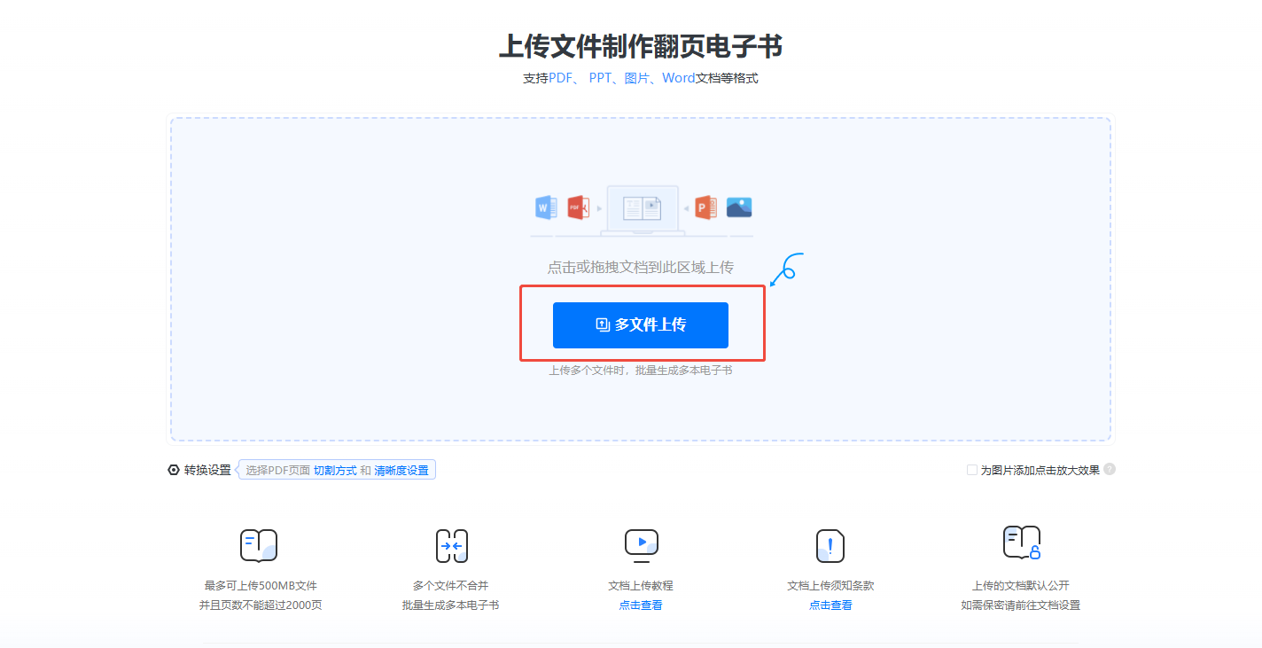 注意事項:批量上傳目前僅支持單文件上傳,也就是一個文件等于一本電子書,多個文件不會合并上傳。