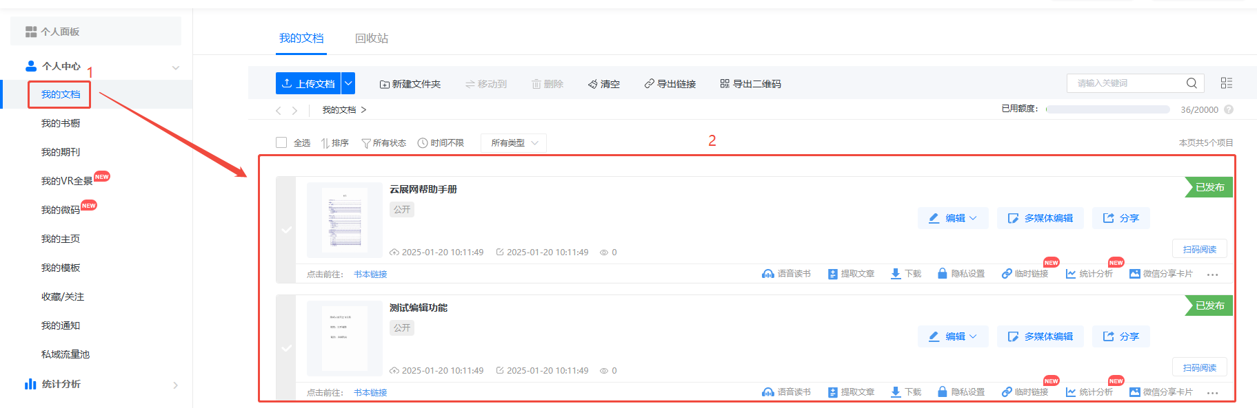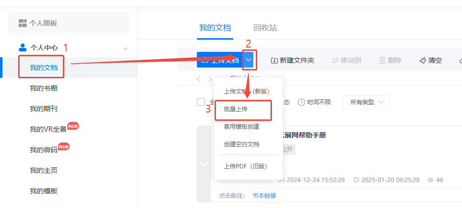 點擊【我的文檔】,然后點擊【批量上傳】,打開批量上傳界面。
