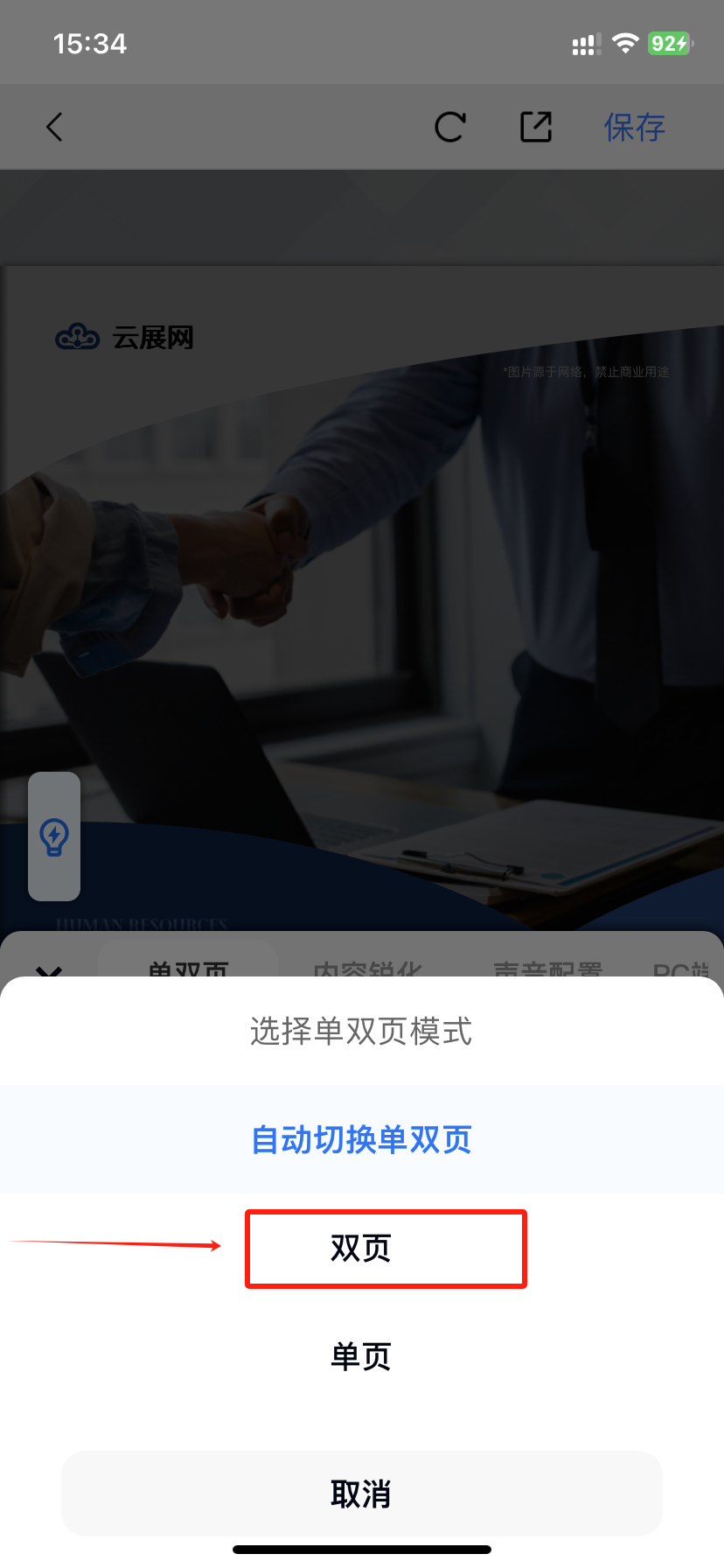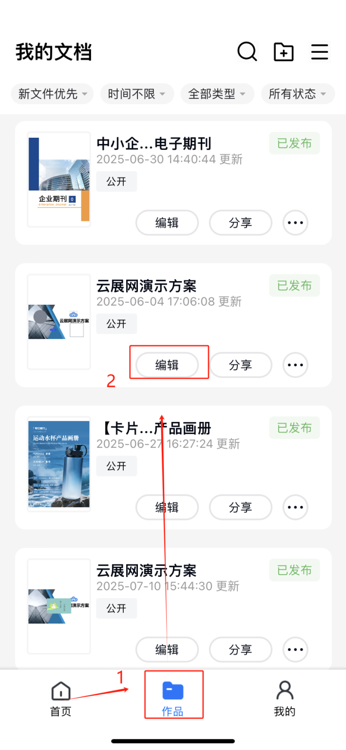 app上如何設(shè)置雙頁顯示? 一、功能介紹 如果您的書本有兩頁需要同一個(gè)畫面連著看,可將電子書設(shè)置為雙頁顯示模式。電腦端和手機(jī)端都會(huì)以雙頁形式展示。 二、操作步驟 1、打開編輯界面 在【作品】頁面,點(diǎn)擊【編輯】進(jìn)入 2、設(shè)置雙頁顯示 在【閱讀設(shè)置】,點(diǎn)擊【單雙頁】,隨后點(diǎn)擊【單雙頁模式】,選擇雙頁顯示