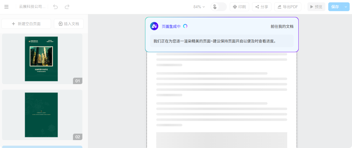點(diǎn)擊右下角的【開(kāi)始AI排版】, 系統(tǒng)將自動(dòng)進(jìn)入智能排版流程, 為您生成精美的電子畫(huà)冊(cè)。