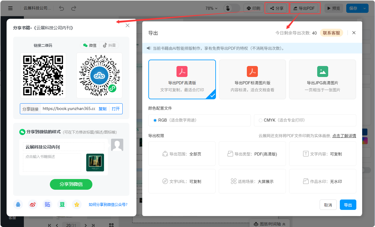 制作完成后, 可在線分享書(shū)籍或?qū)С龈咔錚DF。