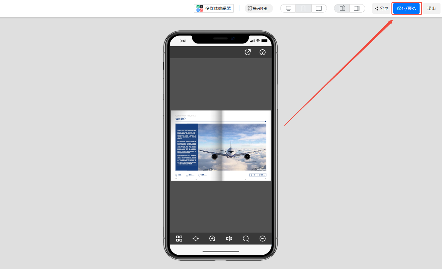 此功能可以讓電子畫冊(cè)在手機(jī)端上豎屏雙頁(yè)顯示。