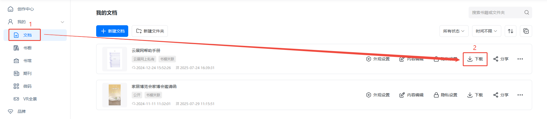1、點擊【文檔】,選擇對應(yīng)電子書,然后點擊【下載】。