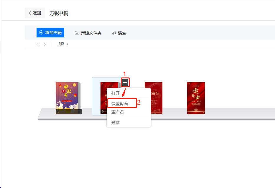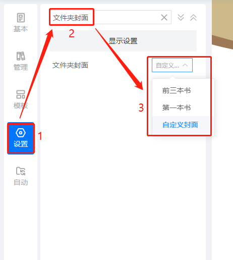 書櫥里的文件夾可以設(shè)置封面,使其看起來更美觀,書櫥文件夾封面有三種類型,分別是:顯示第一本書、顯示前三本書、自定義封面。