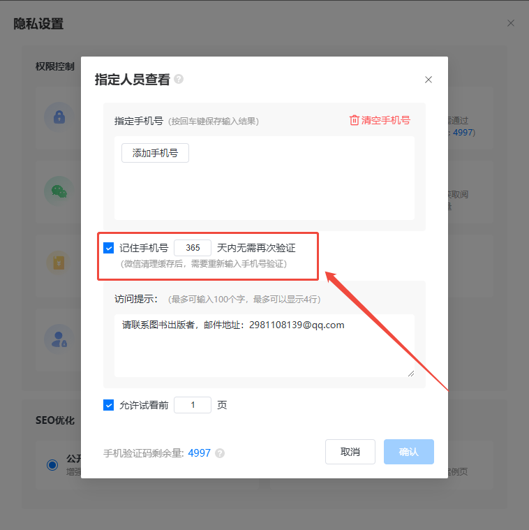 如果你想允許讀者看幾頁之后再要求輸入手機(jī)號驗(yàn)證,可設(shè)置一下允許查看幾頁。