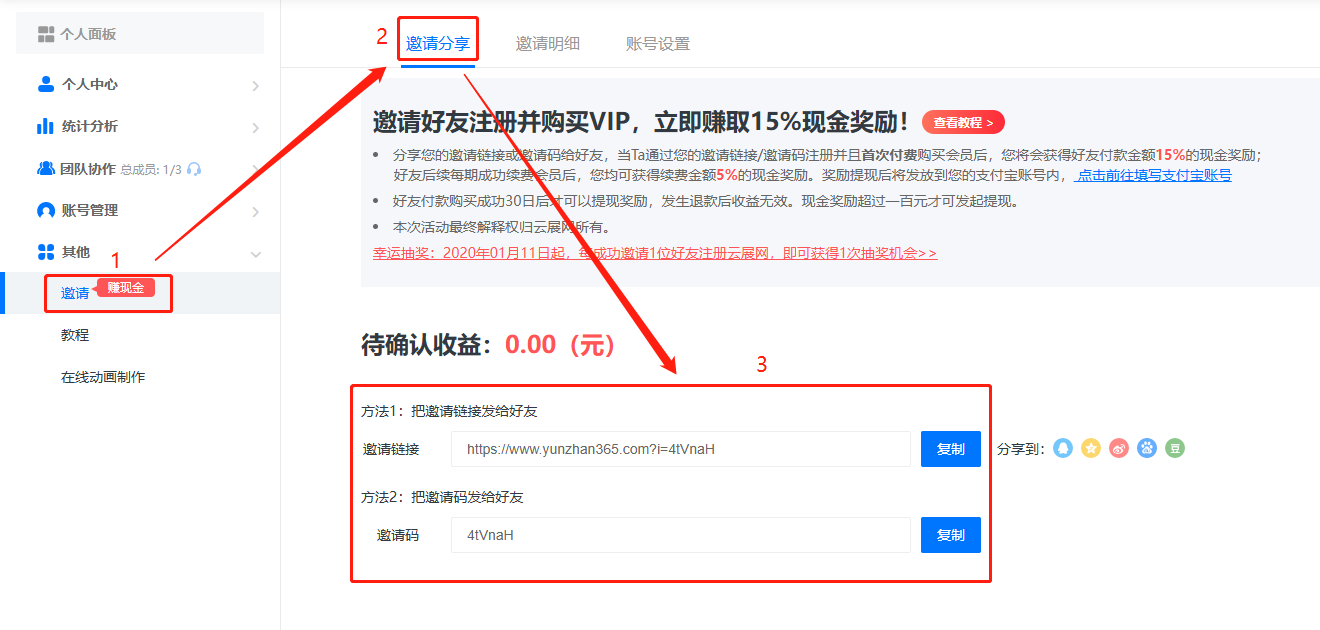 把邀請(qǐng)鏈接或者邀請(qǐng)碼發(fā)給需要購買會(huì)員的人注冊(cè)云展網(wǎng)賬號(hào),讓他在注冊(cè)的時(shí)候務(wù)必填寫您的邀請(qǐng)碼,或者打開您的邀請(qǐng)鏈接注冊(cè)。