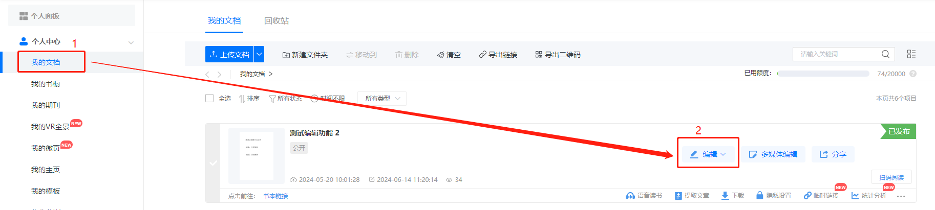 點擊【我的文檔】,選擇需要設(shè)置的電子畫冊點擊【編輯】。