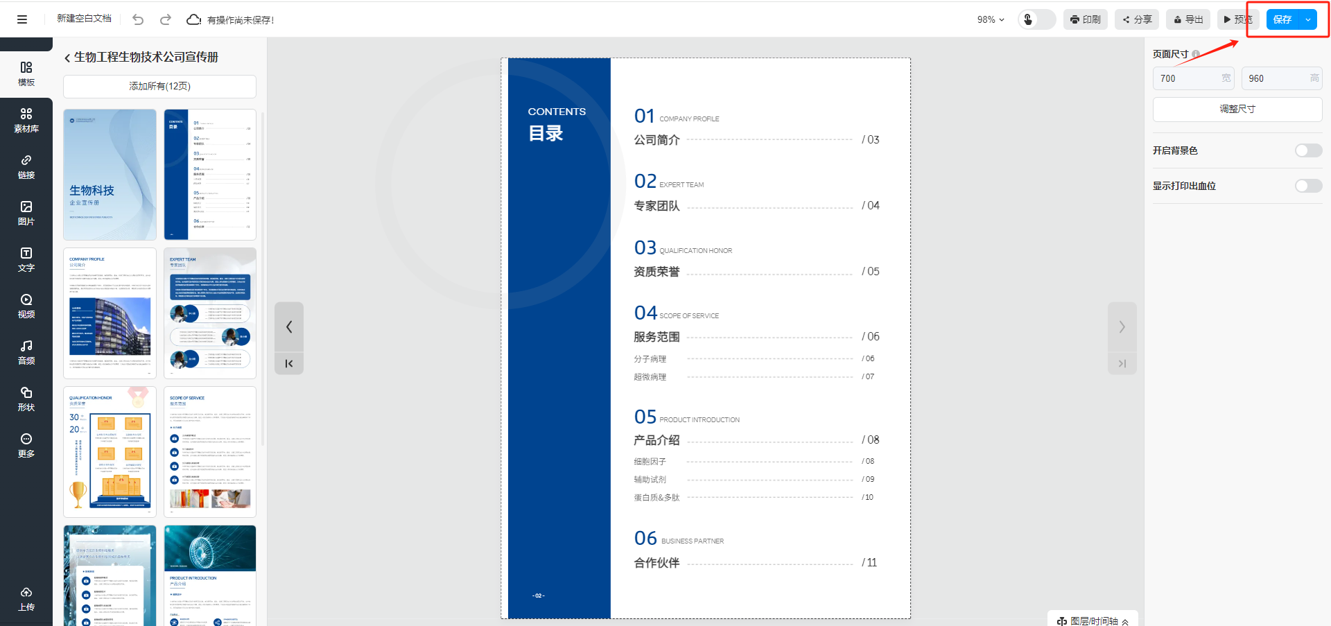 選擇【模板】進(jìn)入模板界面,挑選心儀模板并選擇應(yīng)用模板全部頁(yè)面或其中一頁(yè)。
