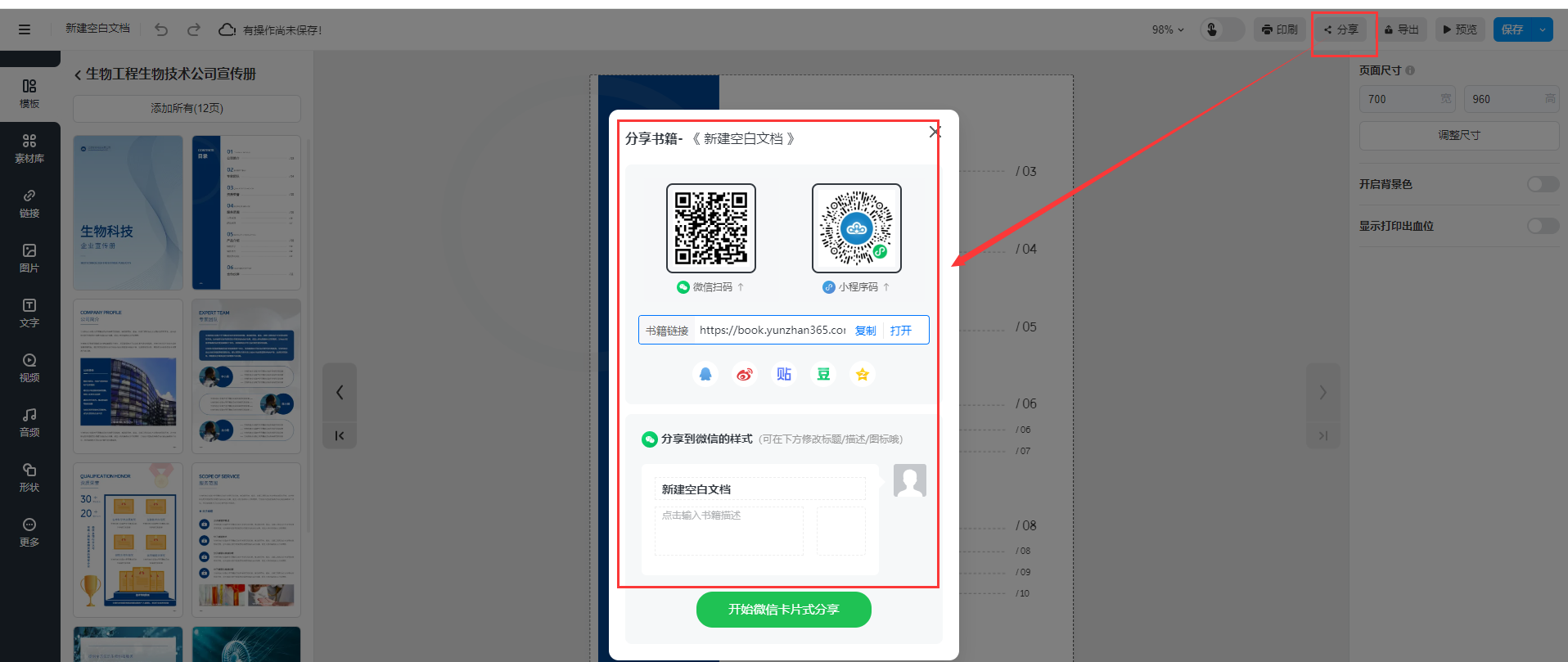 點(diǎn)擊【保存】按鈕,保存后的電子書,可以點(diǎn)擊【分享】發(fā)送到朋友圈或通過鏈接/二維碼分享到微信/QQ好友。