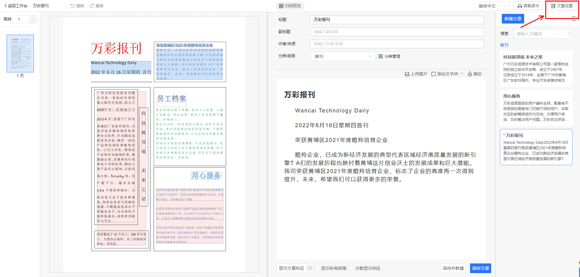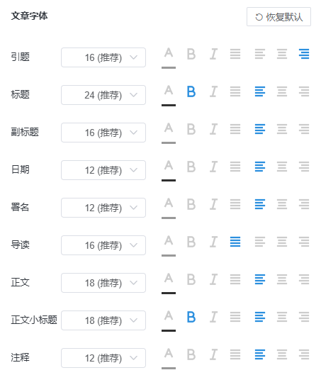 文章設(shè)置,可以對文章的頭尾部展示圖,字體大小,間距,熱區(qū)顏色進(jìn)行配置。
