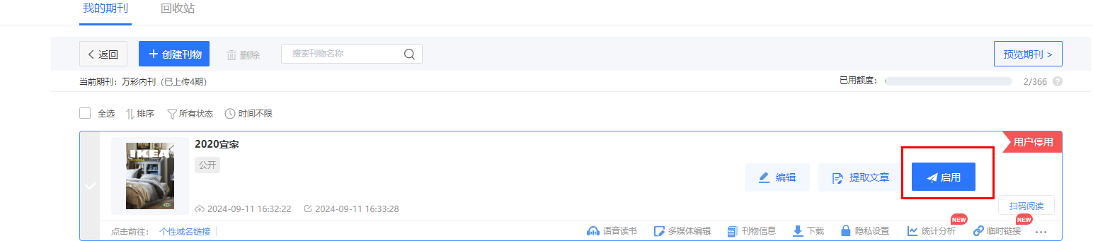 如果想晚點發(fā)布,也可以先不點發(fā)布本期,確定發(fā)布了在這里點擊啟用。