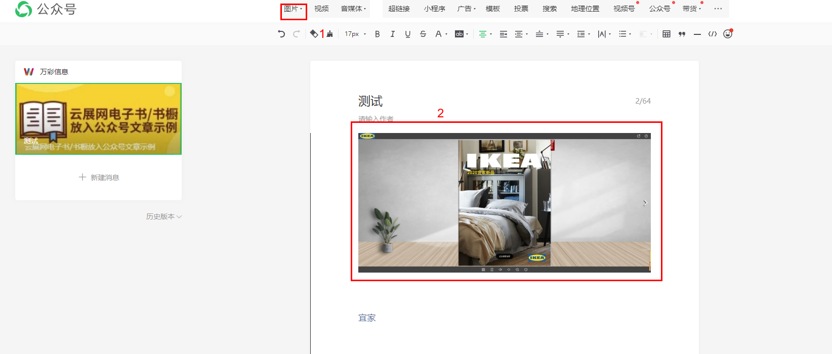 1、 在公眾號文章中,上傳需要設(shè)置跳轉(zhuǎn)的圖片