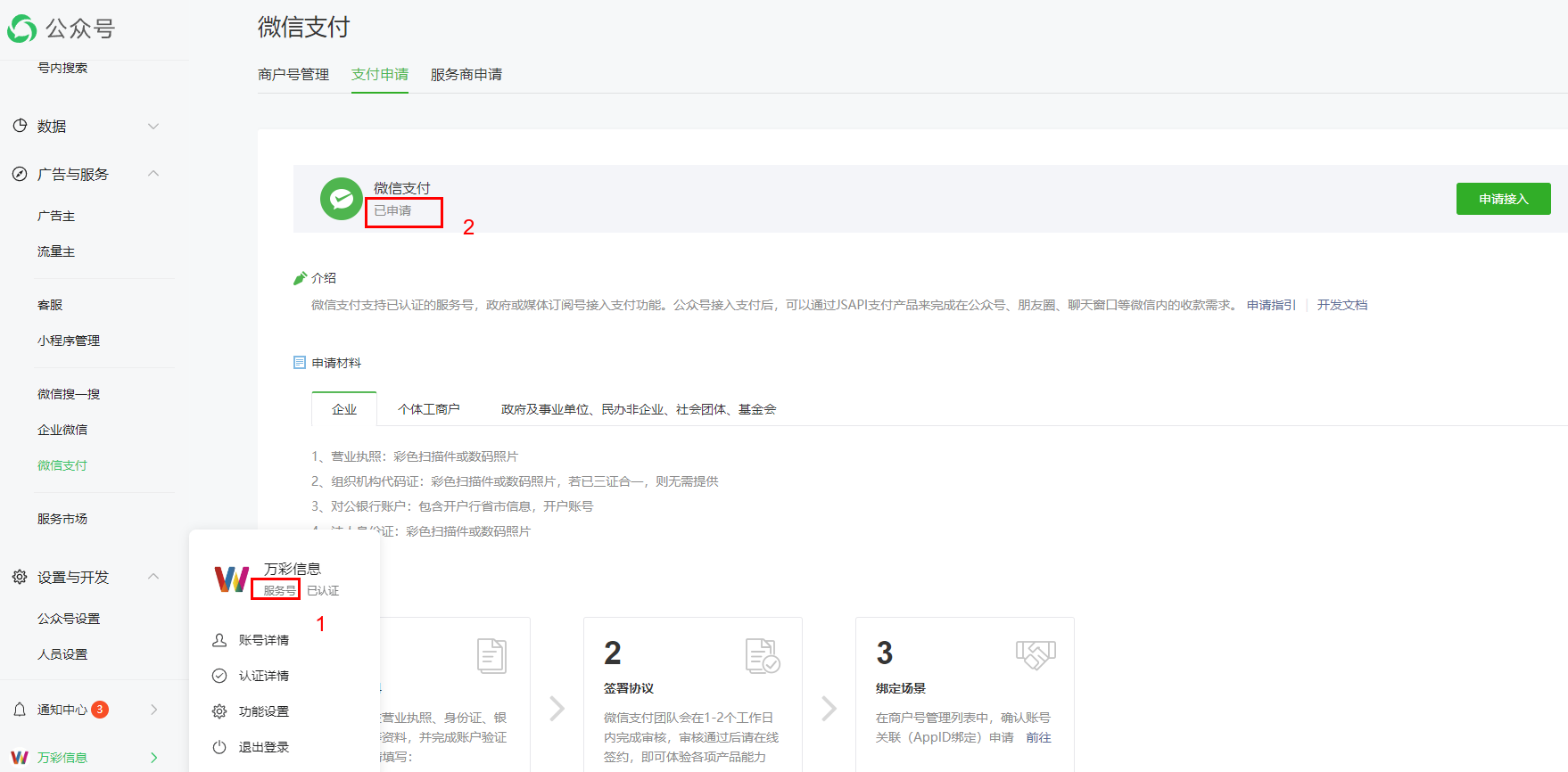 注意:這種方法要求您的公眾號必須是服務(wù)號,并且開通了“微信支付”功能,缺一不可。