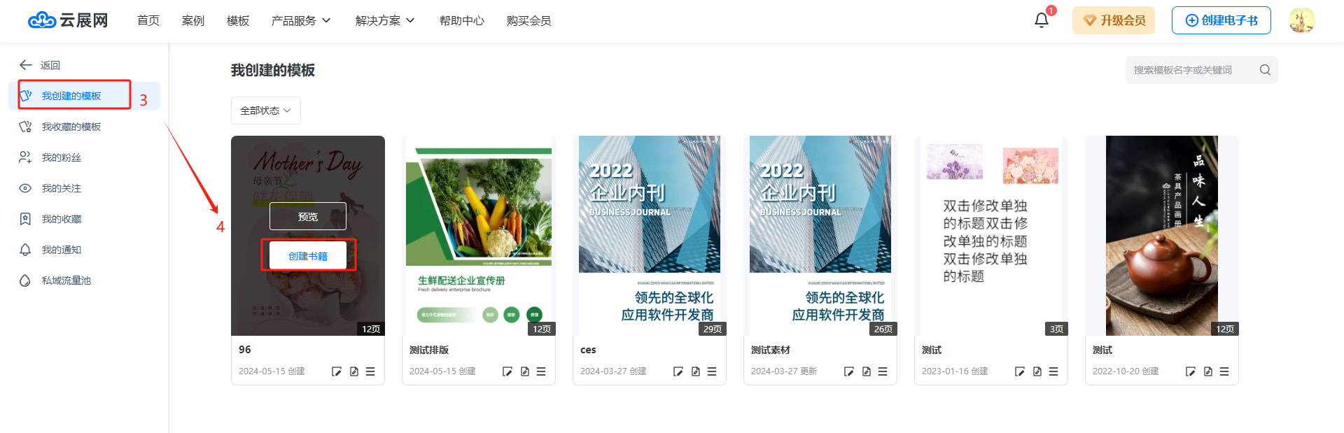 (4)另存的新模板會保存在【我的模板】/【我創(chuàng)建的模板】中,如果需要使用該模板進(jìn)行制作,則點擊【創(chuàng)建書籍】即可