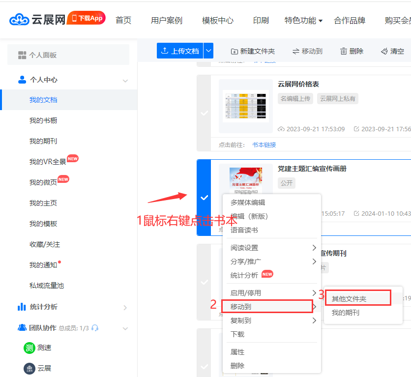 鼠標右鍵點擊書本–選擇【移動到】—【其他文件】–選中對應的文件夾