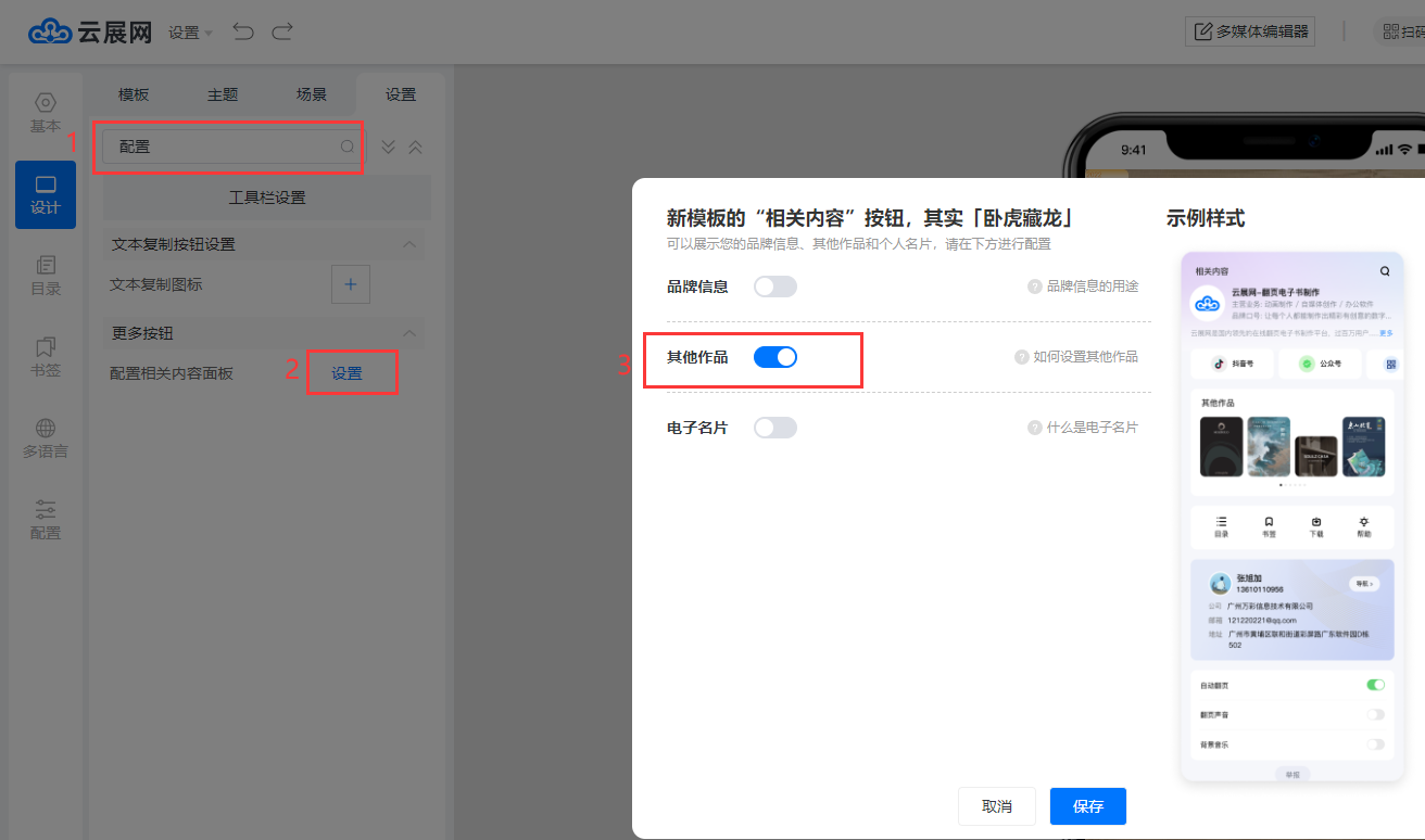 點擊【編輯】–在搜索欄輸入 “ 配置 ” 關鍵字查找,設置【配置相關內容面板】–勾選【其他作品】