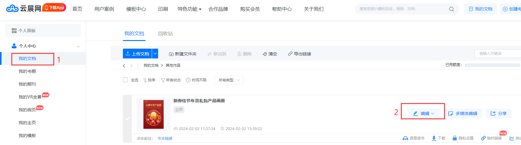 在【我的文檔】頁面,點擊【編輯】進(jìn)入編輯頁面