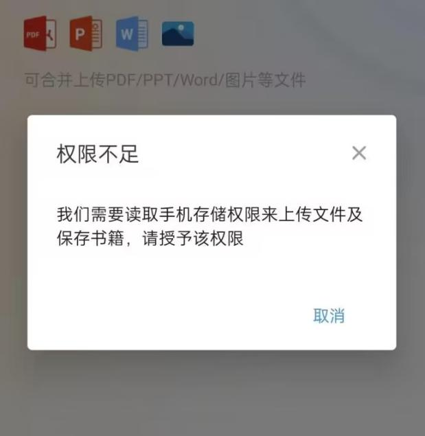 使用云展網(wǎng)app上傳文件時提示權(quán)限不足: