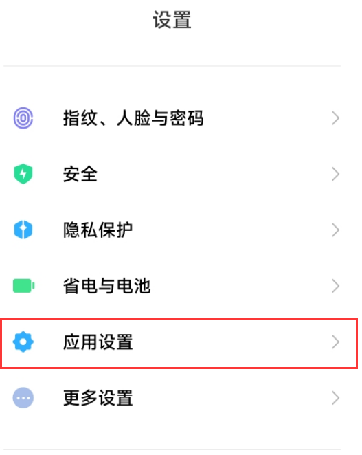 1.打開手機(jī)設(shè)置,點擊“應(yīng)用設(shè)置”
