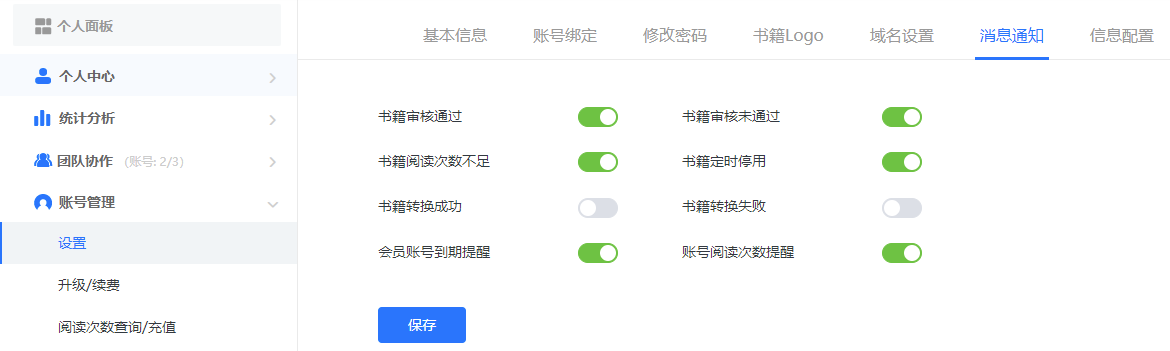 用戶注冊成功后,默認接受上傳書籍審核通過與審核未通過的郵件通知。如果不想收到該郵件,或者只接受某類郵件,請再信息通知欄設(shè)置相關(guān)信息。