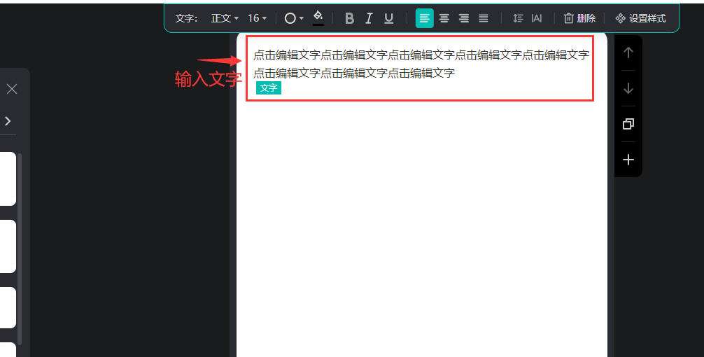 點(diǎn)擊【添加組件】,點(diǎn)擊【文字】,頁面上會(huì)出現(xiàn)文本框,在文本框內(nèi)輸入文字