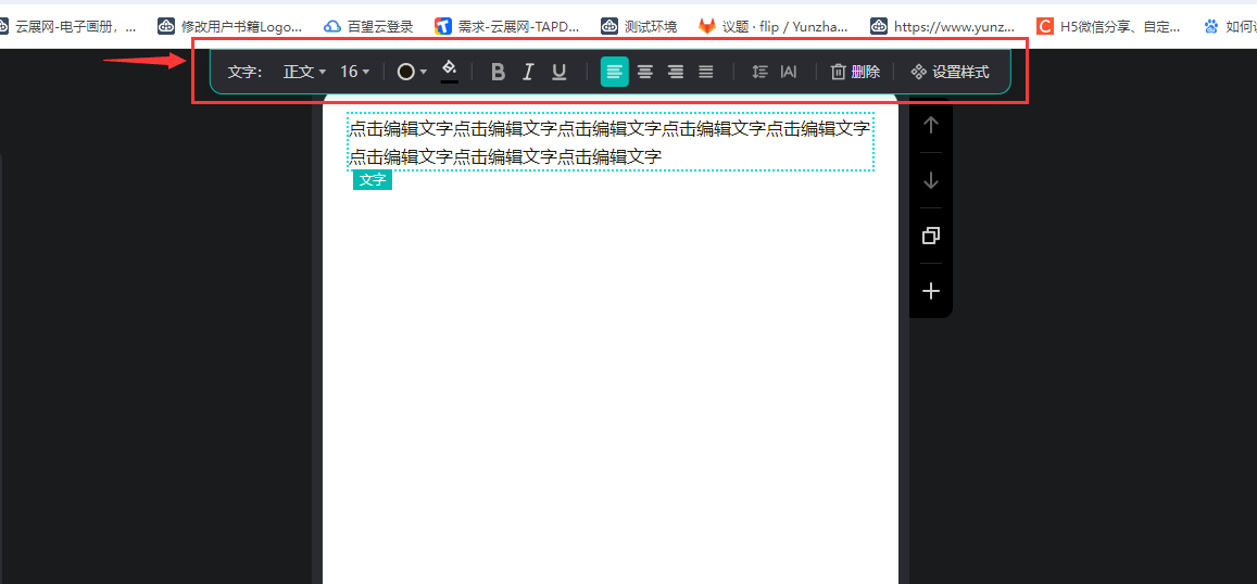 點(diǎn)擊文本框,在頁面上方可設(shè)置文字大小,顏色,對(duì)齊方式等