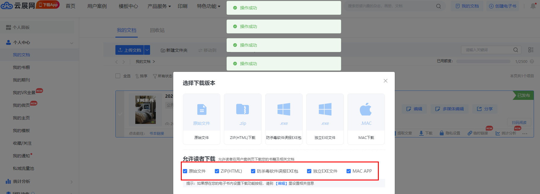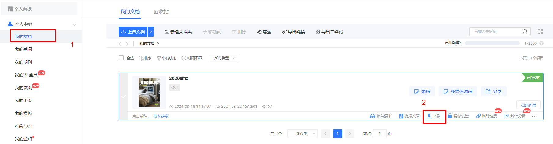1)點(diǎn)擊【我的文檔】,允許下載的書,點(diǎn)擊【下載】