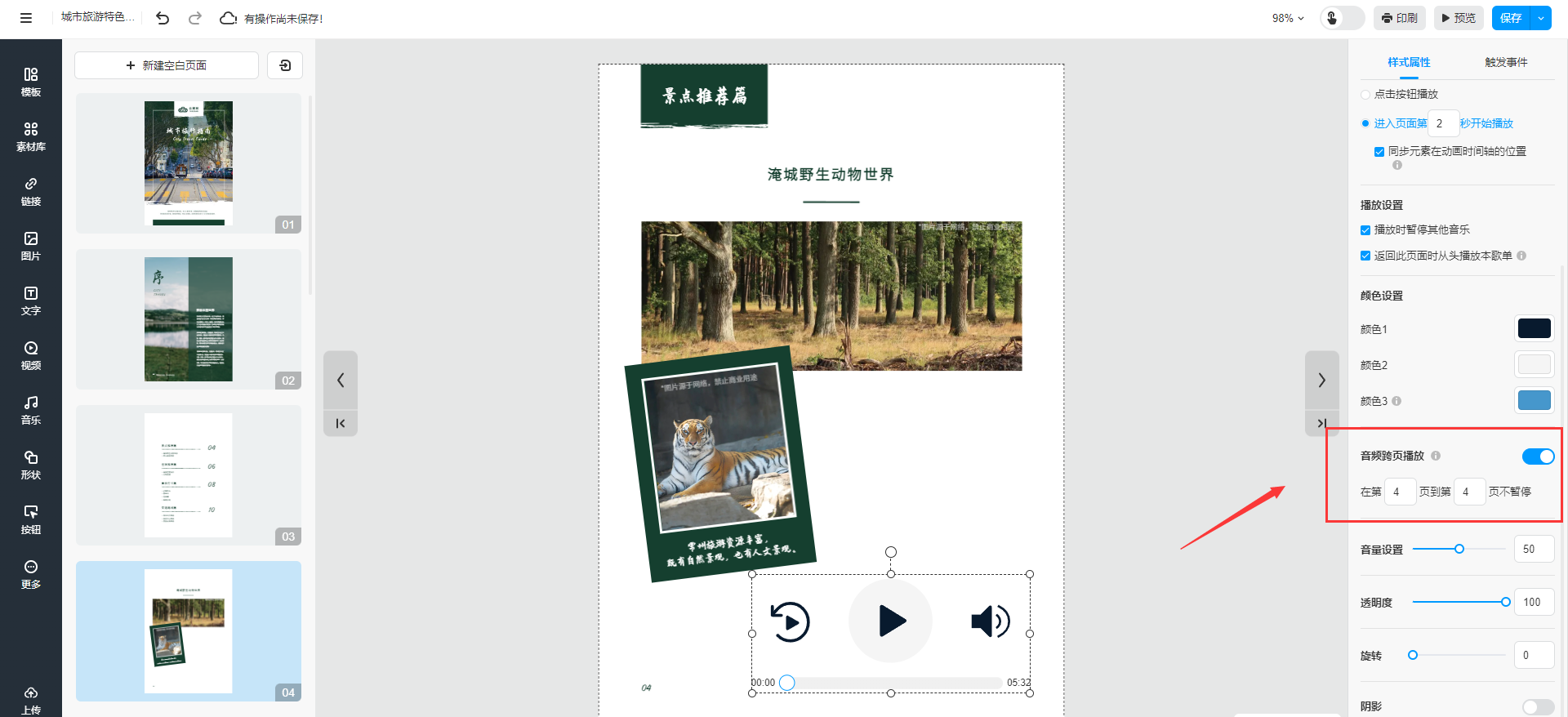 勾選后,根據(jù)你的需求,輸入需要播放音樂的頁數(shù)范圍,此音頻將在指定頁數(shù)內播放,翻到指定頁數(shù)外會自動暫停。
