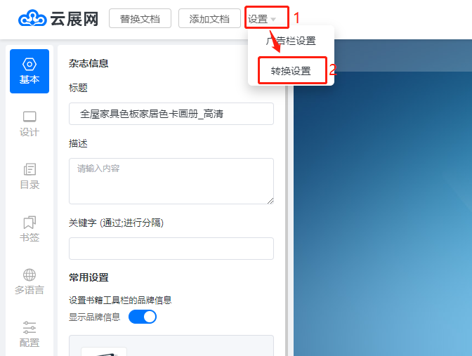 a)點擊左上角【設(shè)置】,然后點擊【轉(zhuǎn)換設(shè)置】。