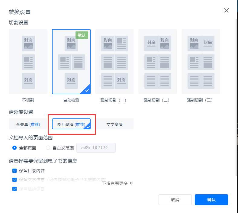 b)【清晰度設(shè)置】選擇【圖片高清】。