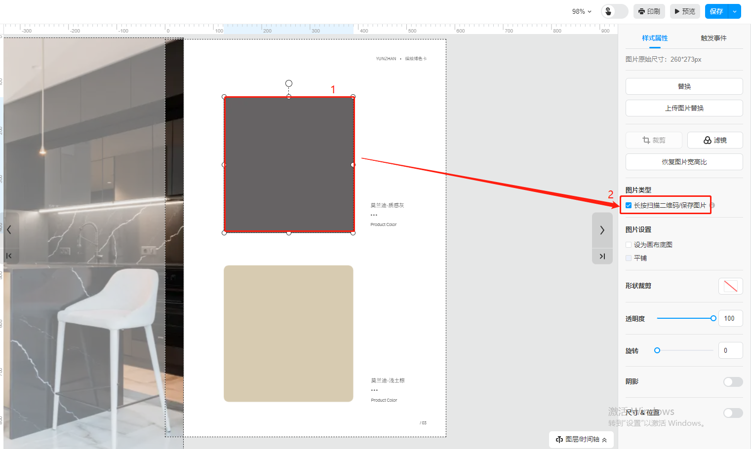 選中插在頁面上產(chǎn)品圖,打開【長按掃描二維碼/保存圖片】。