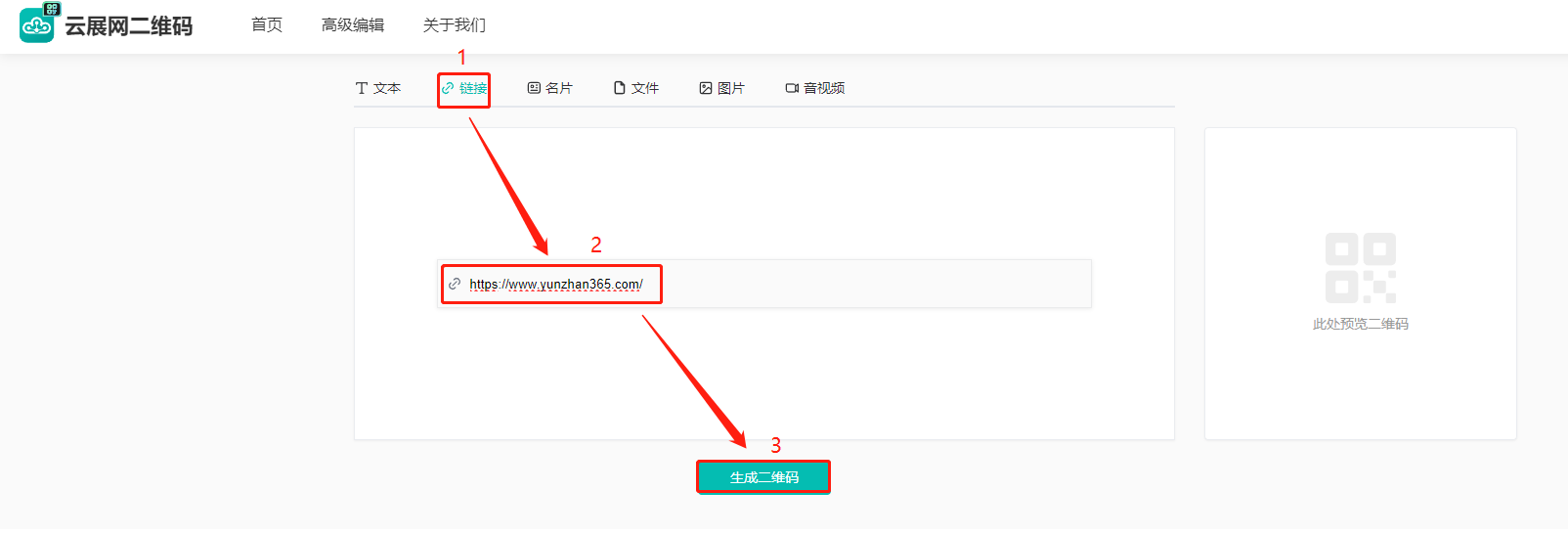 (1)點(diǎn)擊【鏈接】,下方輸入鏈接,點(diǎn)擊【生成二維碼】。